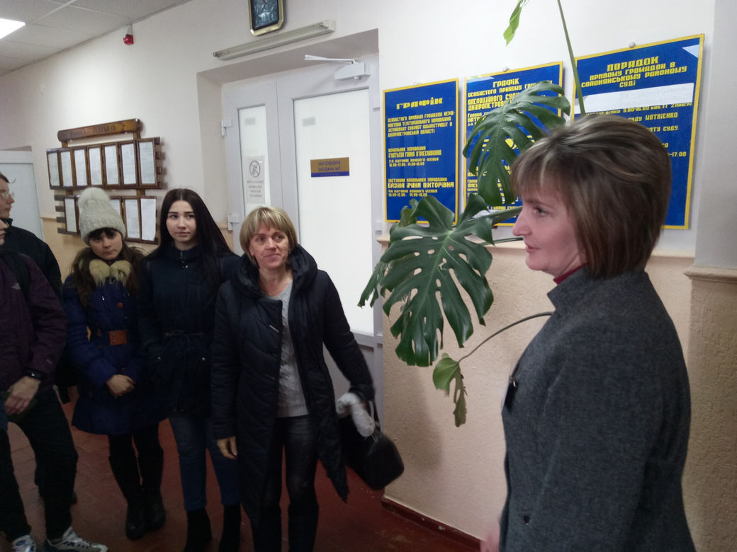 Керівник апарату суду Матвієнко Марія Богданівна провела екскурсію приміщенням суду, яка включала в себе огляд робочих кабінетів, залів судового засідання, конвойного приміщення, інформаційних стендів.