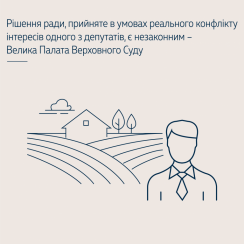 Велика Палата Верховного Суду звернула увагу, що про конфлікт інтересів може заявити будь-який інший член відповідного колегіального органу або учасник засідання, якого безпосередньо стосується питання, що розглядається, тобто про наявність конфлікту інтересів мав заявити і депутат як член відповідної постійної комісії сільської ради, до обов’язків якої входить урегулювання конфлікту інтересів у депутатів сільської ради, чи будь-який депутат сільської ради, який знав про наявність конфлікту інтересів.