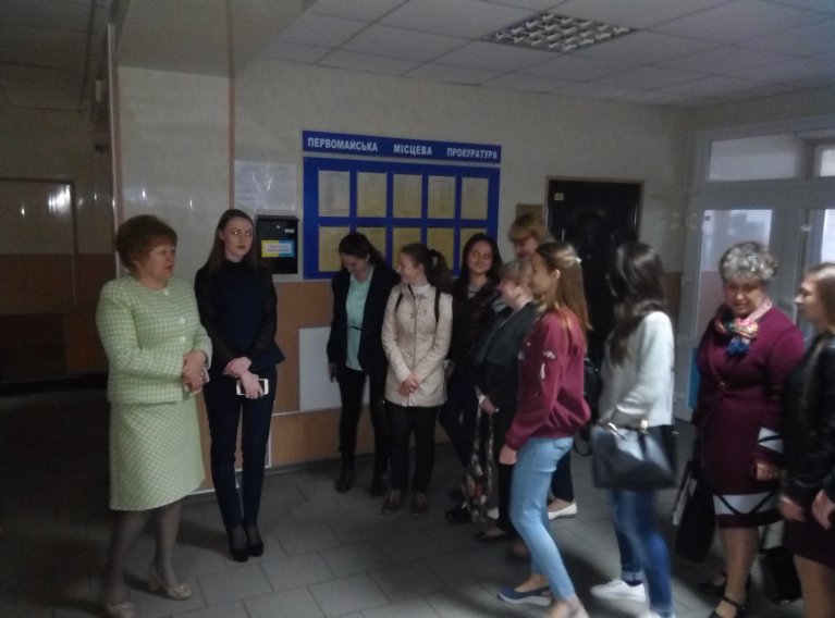 На початку заходу, вітали молодь у фойє заступник голови суду, суддя-спікер Т.Я. Літвіненко та прес-секретар суду Кернасовська О.О. Вони провели екскурсію судом ( огляд робочих кабінетів, залів судових засідань, стендів з додатковою інформацією), ознайомили з діяльністю суду, роботою канцелярії, з порядком зберігання справ у архіві.
