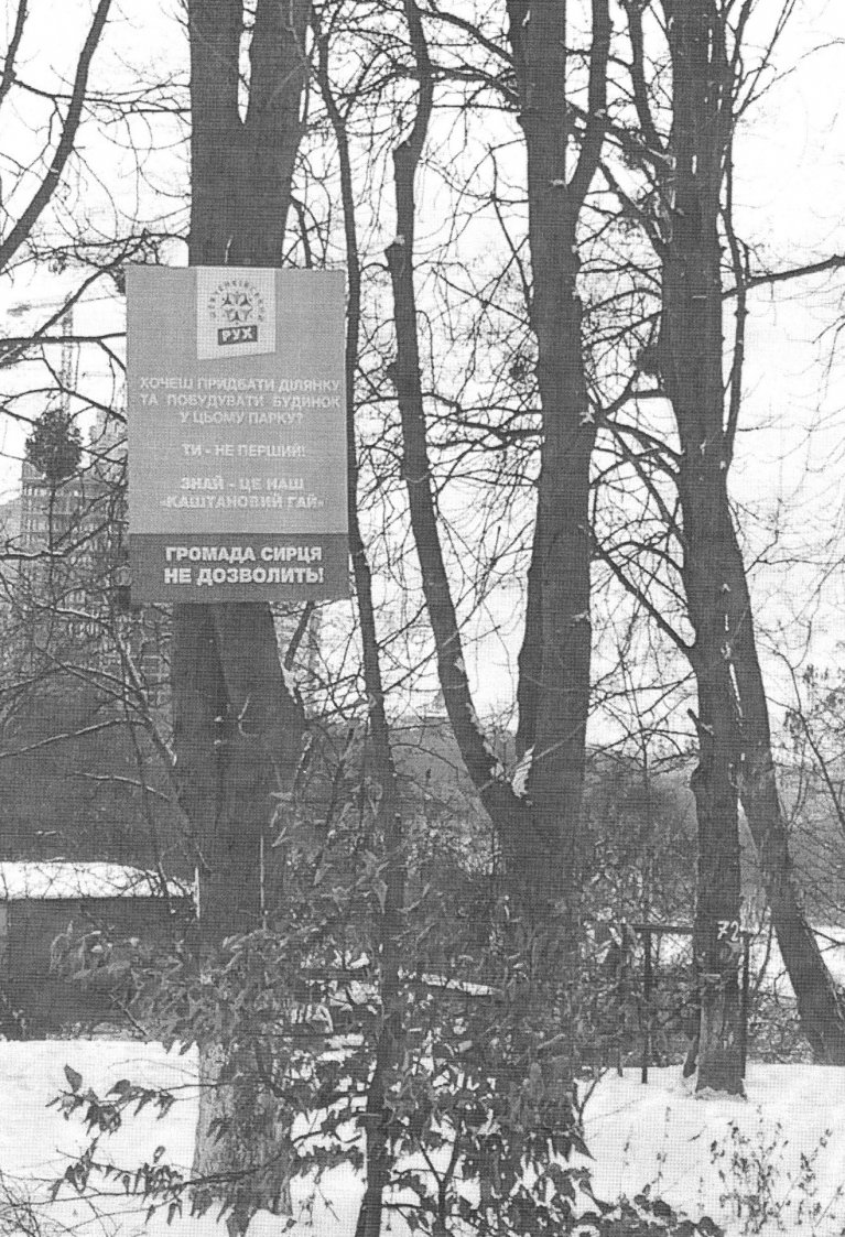 Крім того, передача землі у власність однієї фізичної особи для будівництва приватного житла перешкоджає її використанню громадою міста як землі рекреаційного призначення та зеленої зони відпочинку (скверу). Інформація про передачу скверу (Каштанового гаю) із півстолітніми деревами та дитячим майданчиком у приватну власність для забудови набула негативного суспільного резонансу серед жителів району.